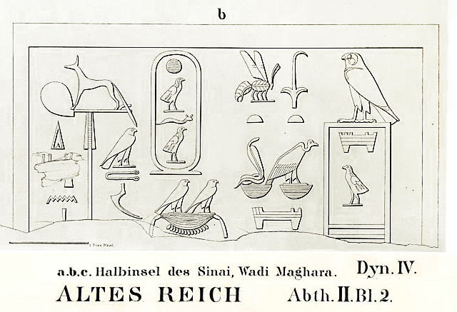 In Lepsius' drawing, we can read the cartouche of Khufu, a 4th Dynasty pharaoh.