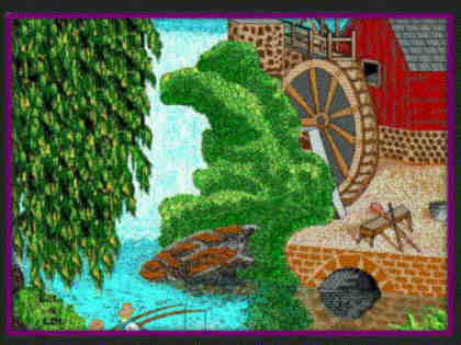 "This was the picture that generated the idea to use dpaint as an artistic tool. Mother's oil is a fine piece of work, too large to scan. In this manner I preserve the idea and some of her art in cyberspace." Of course, if ever we acquire a photo of this painting, I'll include that. But I admire this version for its own sake. I just wish we had a larger image. Perhaps in those old archival discs... |