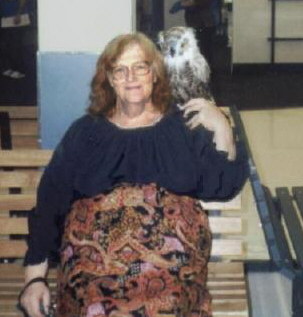 this one of Laura with an owl perched on her shoulder. It is a scanned image of one I took of Laura in 2000 at