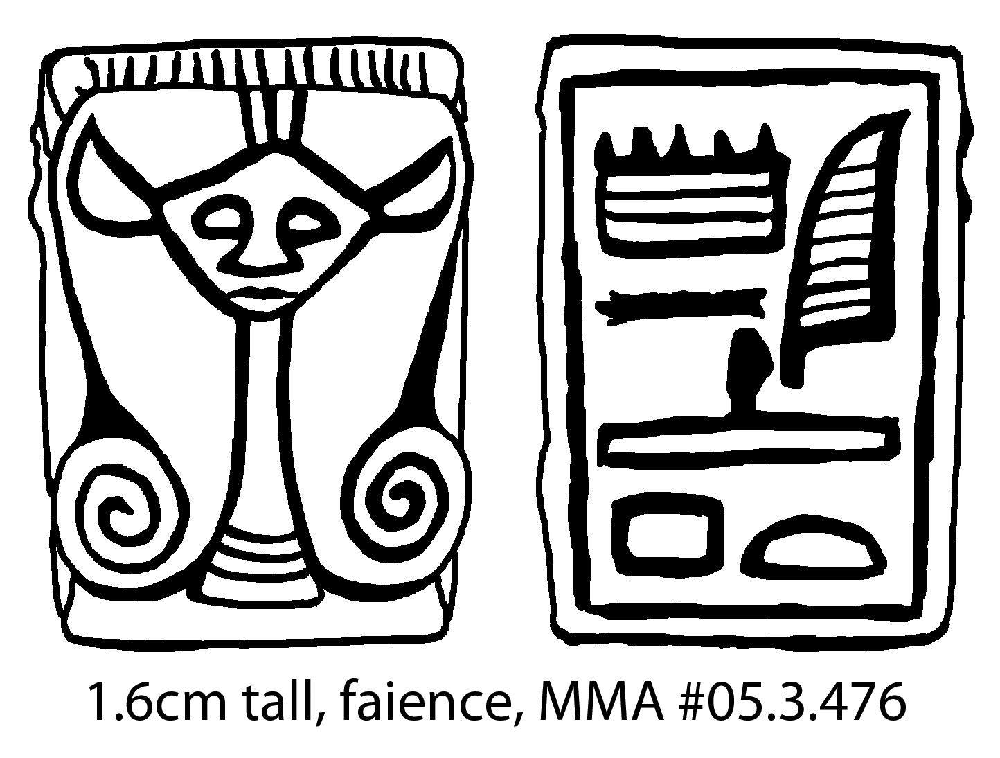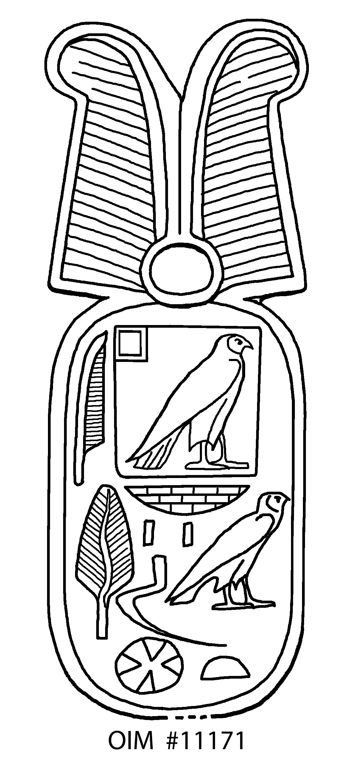 With this information, I could take to the web and hunt photos. Bruce Allardice has the most legible photo, while Osirisnet has a line image with the glyphs). Between the two, I was able to make out the hieroglyphs: