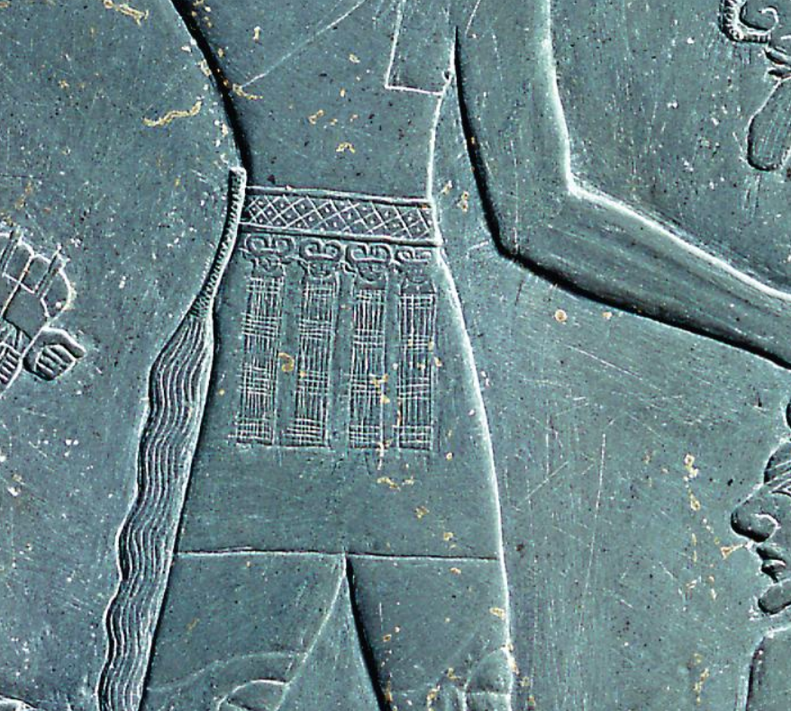 This piece is so fascinating because it's combining various symbols. We see the Tyet amulet's "arms", and the "spine" (connoting stability) of the Djed pillar: