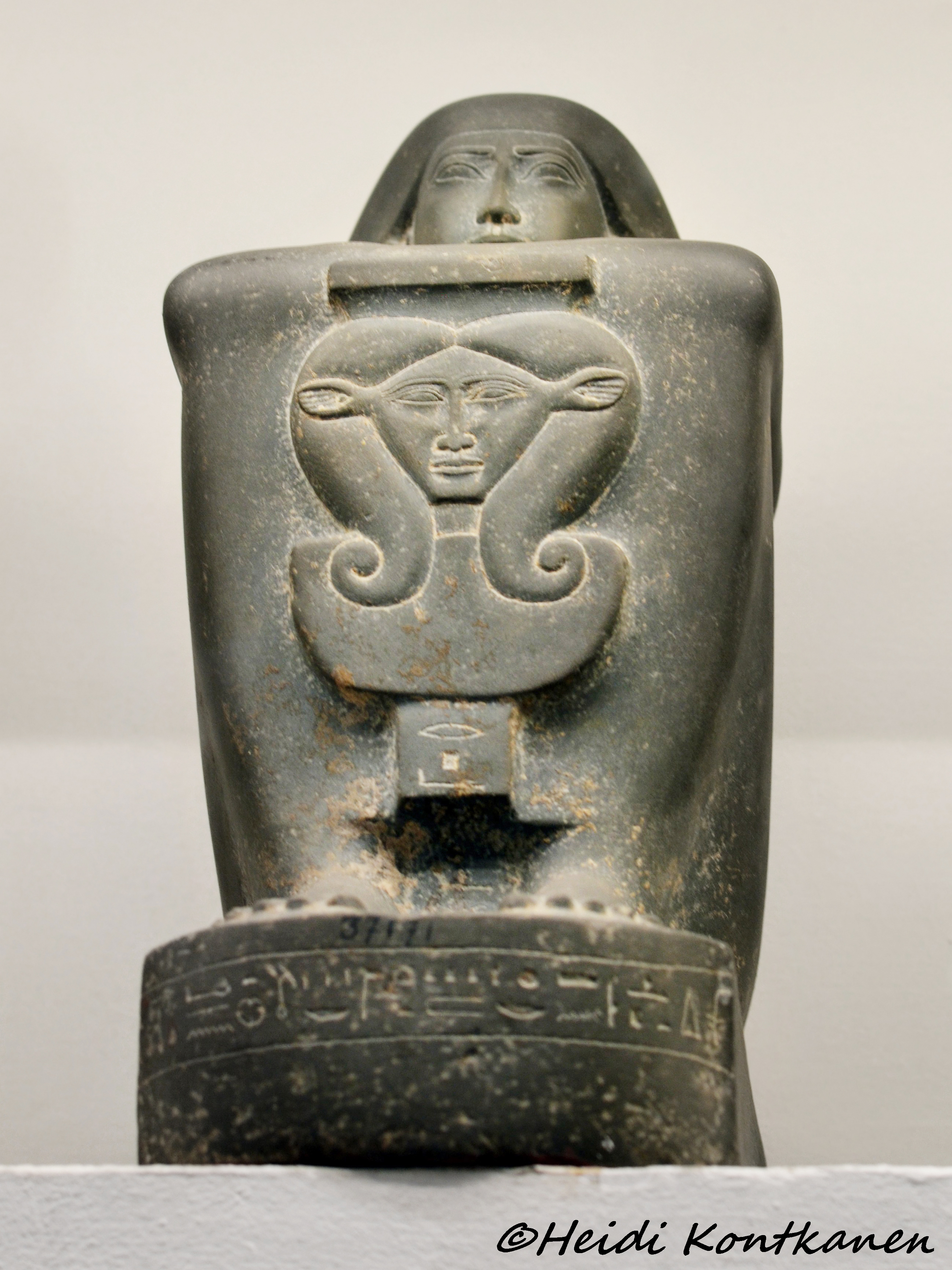 Four of Senenmut's statues are sistrophorus, a little one at the Met museum (22.5cm), one at the Munich museum (40.5cm), a huge one at the Cairo museum (155cm), and a headless but possessing an excellently detailed Hathor/Tyet (50cm) at the Luxor museum.